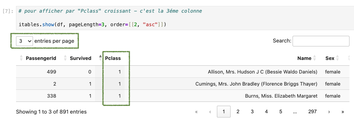 itables.show(df, pageLength=3, order=[[2, "asc"]])qui donnerait ceci